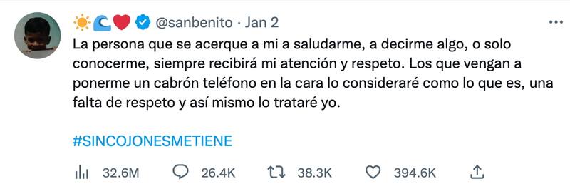 "Recordarnos también que es una persona y llegar a invadir así su privacidad no está bien ni es normal, como dijo él en su Twitter, si tú vienes y me hablas, con gusto te voy a recibir, pero si vienes a ponerme un teléfono en la cara, ¿cómo esperas que yo te respete si tú no me estás respetando?", dijo la ex reina de belleza.