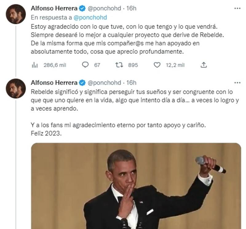 Poncho Herrera afirmó que "estoy agradecido con lo que tuve, con lo que tengo y lo que vendrá. Siempre desearé lo mejor a cualquier proyecto que derive de Rebelde". "De la misma forma que mis compañer@s me han apoyado en absolutamente todo, cosa que aprecio profundamente", agregó.