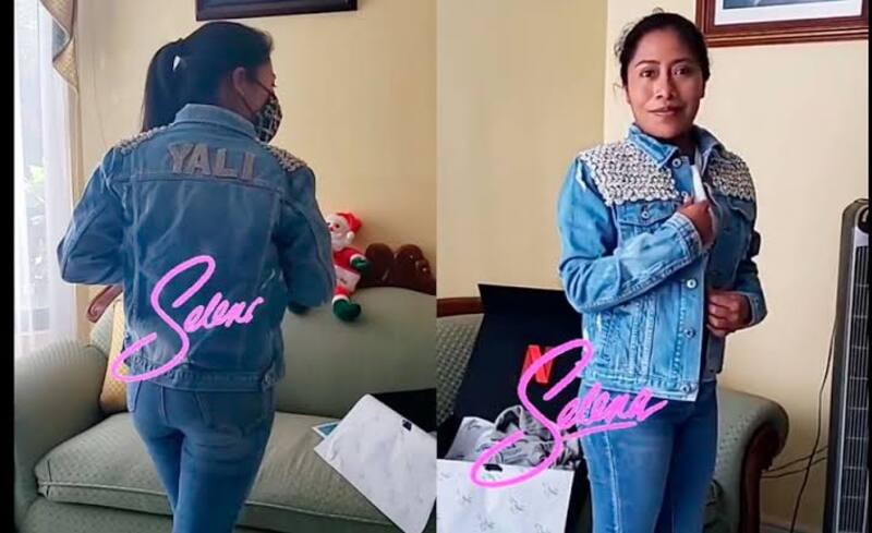 Yalitza compartió en su cuenta de Instagram un video del regalo que recibió de parte de la plataforma de streaming, que incluía, entre otras cosas, una chamarra al mero estilo de Selena con el nombre de "Yali" grabado con estoperoles en la espalda.
