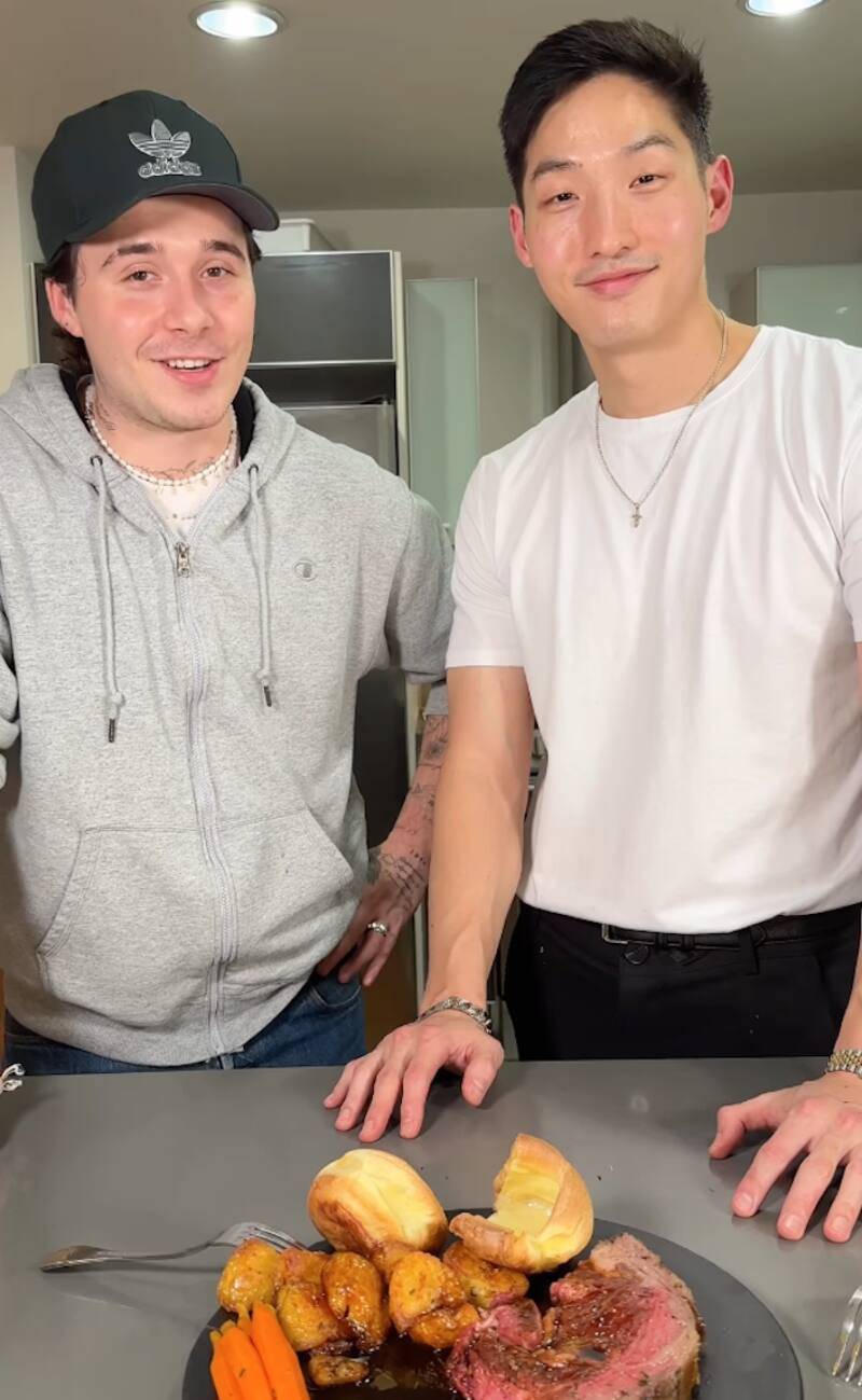 A través de su cuenta oficial de Instagram Brooklyn Beckham compartió un video en el que aparece con el chef Michelin, Kevin Lee, a quien se le unió para cocinar su estilo de un Sunday roast, uno de los platillos típicos del Reino Unido. Para la preparación el duo usó una gran cantidad de mantequilla por lo que sus seguidores aseguraron que era "un ataque seguro al corazón", además de que la carne terminó más rosa de lo que debería, según internautas.