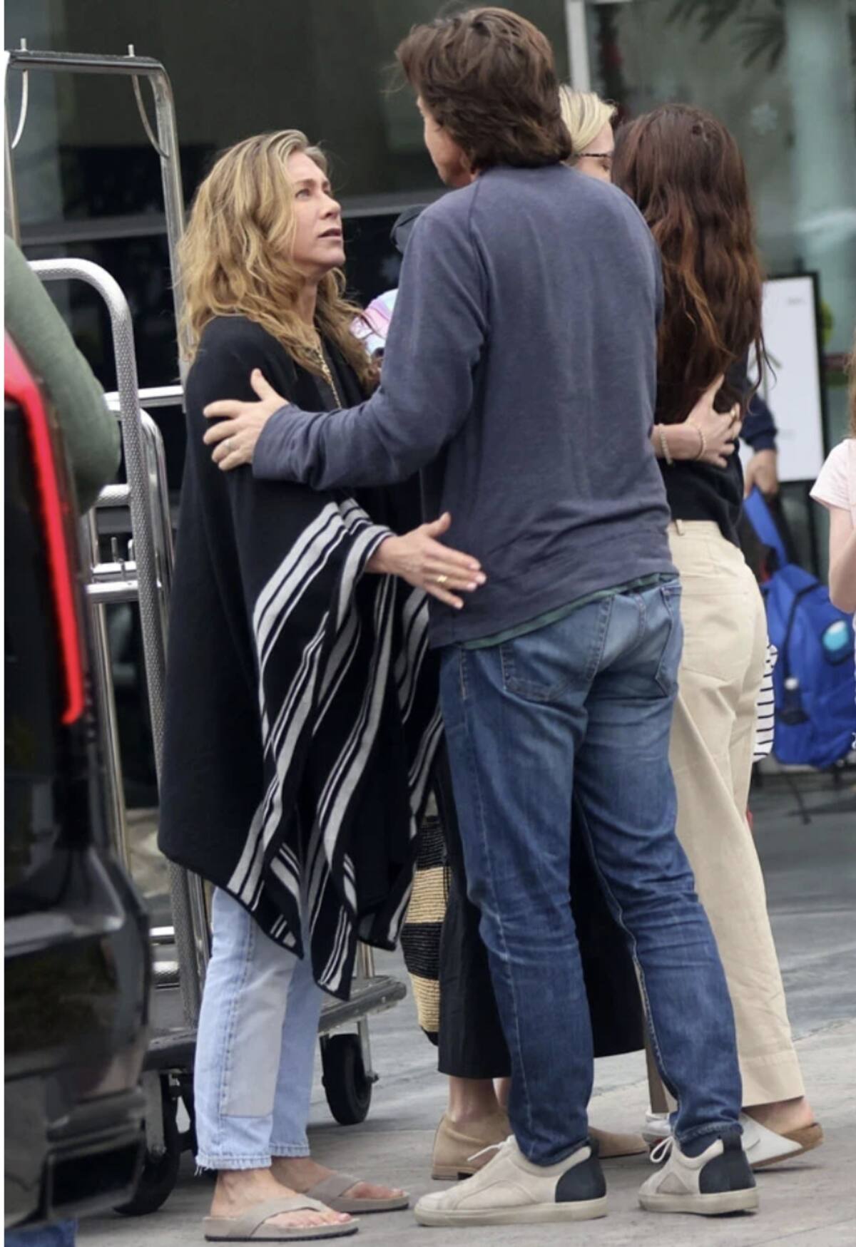 Mientras que Jennifer Aniston estaba vestida con un atuendo que se veía cómodo, mientras le daba un abrazo de despedida a Jason Bateman. La estrella de Friends salió sin maquillaje para su vuelo de regreso a Los Ángeles.