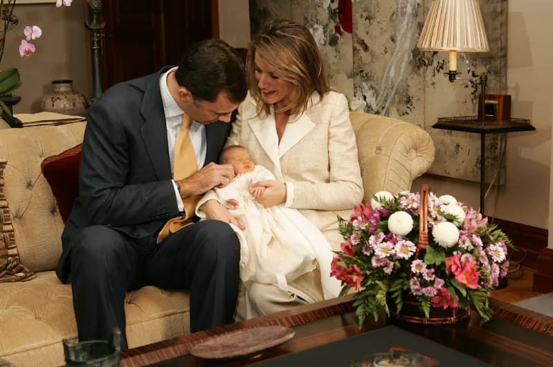 Entre las fotografías que lanzó la Casa Real de España, se puede ver a la princesa Leonor de Asturias con solo días de nacida durmiendo plácidamente entre los brazos de sus padres, el rey Felipe y la reina Letizia, en el año 2005.