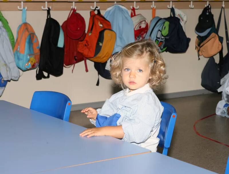 La Casa Real española también posteó la fotografía del primer día de clases de la princesa en la Escuela Infantil de la Guardia Real, ubicada en el Palacio de El Pardo, sentada en su pupitre con el uniforme obligatorio para todos sus estudiantes.