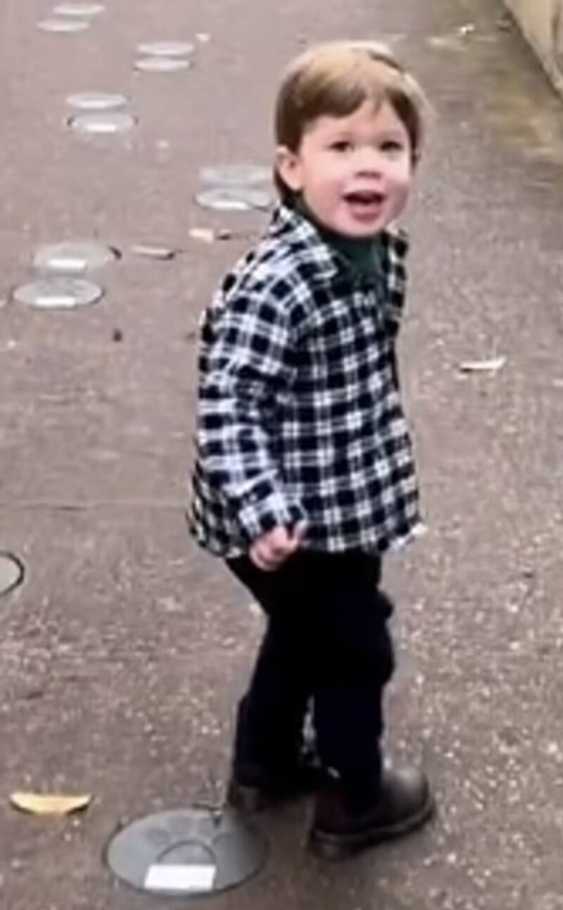 Un clip los muestra en una caminata con el niño pequeño mientras chapotea riendo en los charcos mientras usa botas de agua. Otras fotos lo muestran caminando de la mano con sus padres en la playa.