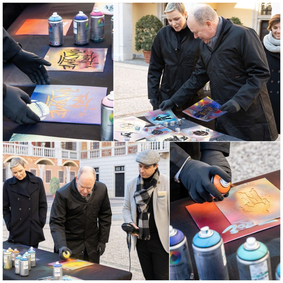 En esta ocasión, la pareja real aprendieron la técnica de stencil para crear una serie de obras de estilo urbano junto al artista Mr. OneTeas para las que se animaron a ponerse guantes, usar los botes de pintura en spray para dar cabida a uno de sus actos más artísticos y urbanos hasta la fecha.