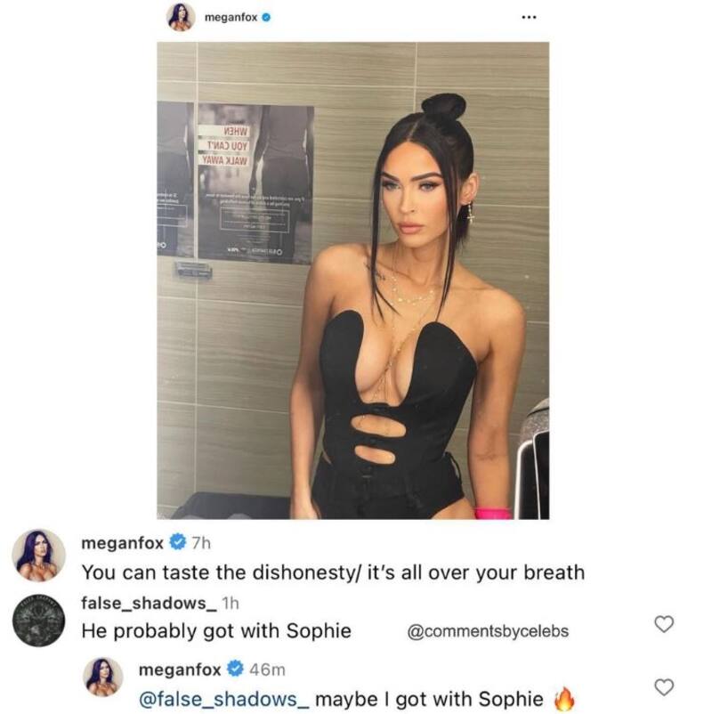 No sin antes respondió a uno de sus seguidores que le preguntó si "Sophie" habría sido la causante de su ruptura con el cantante, a lo que la estrella de Transformers respondió: "Tal vez me encontré con Sophie" y agregó un emoji de llama.