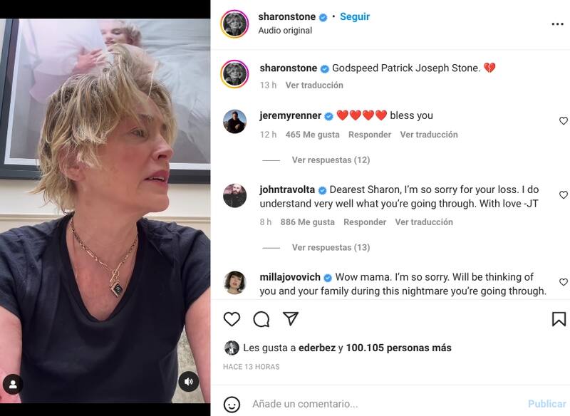 A su posteo, respondieron personalidades como John Travolta, quien escribió: "Querida Sharon, lamento mucho tu pérdida. Entiendo muy bien por lo que estás pasando. Con amor -JT".