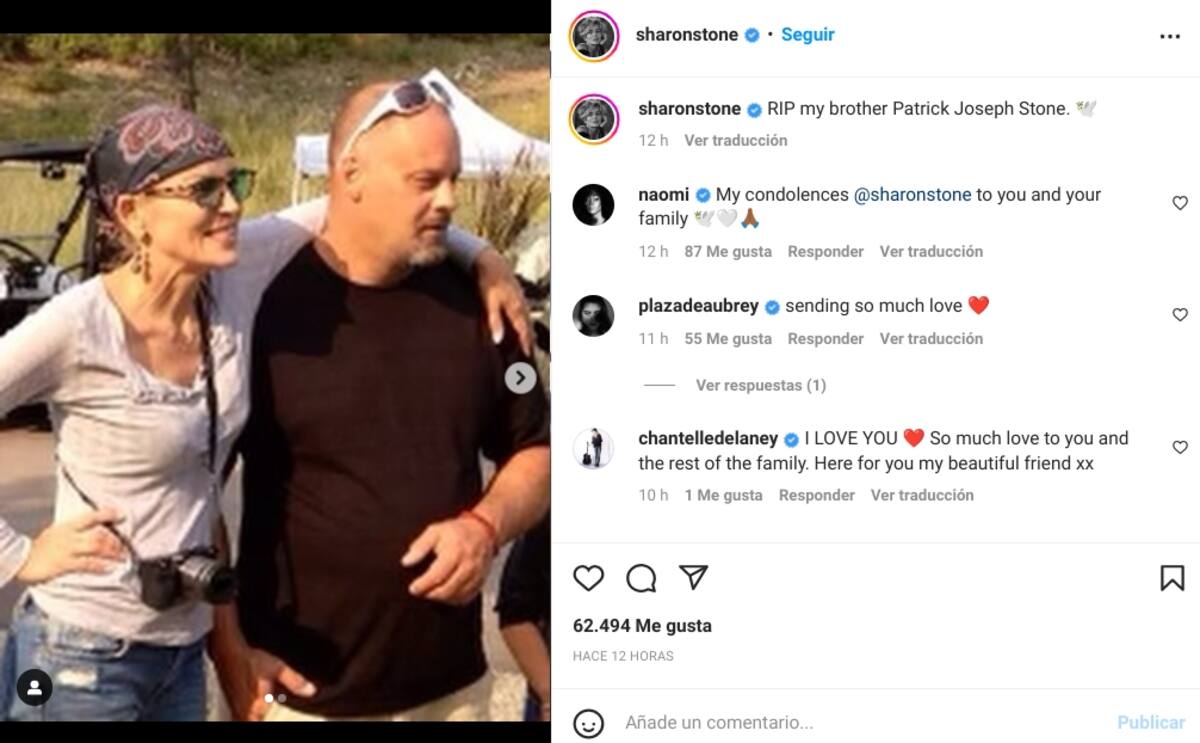 "Hola todos. Este mensaje es para confirmar que sí, ayer perdimos a mi hermano Patrick Joseph Stone por un ataque al corazón", dijo quien protagonizara "Basic Instinct".
