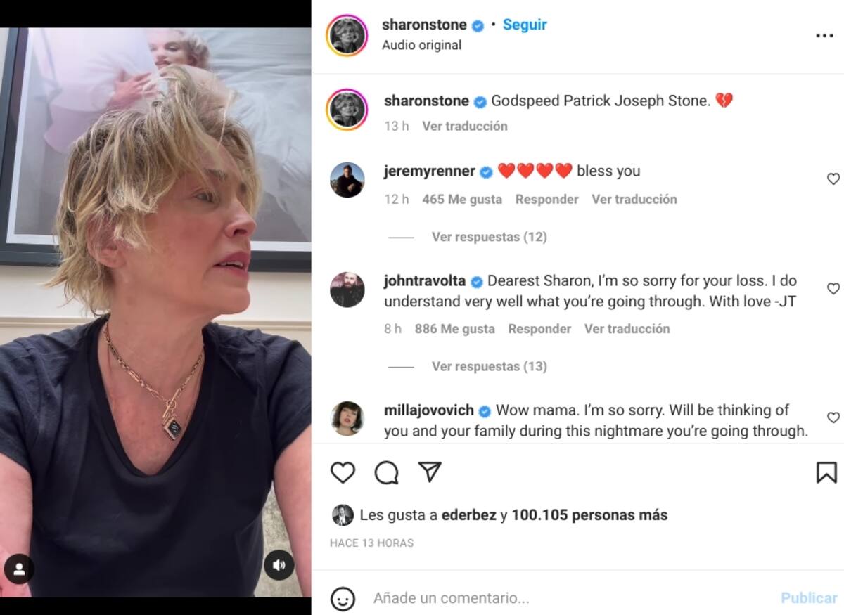 A su posteo, respondieron personalidades como John Travolta, quien escribió: "Querida Sharon, lamento mucho tu pérdida. Entiendo muy bien por lo que estás pasando. Con amor -JT".