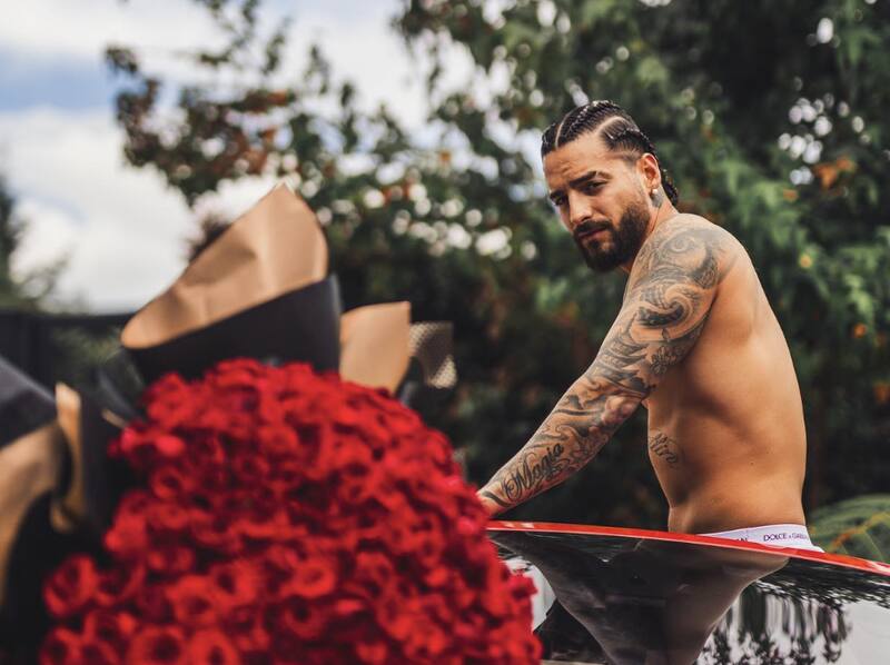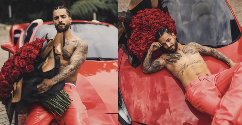 En ellas se ve a Maluma posar sin camiseta, con su nuevo look de trenzas, encima de su Ferrari rojo y con un ramo de rosas gigantesco que, por supuesto, causaron más de un suspiro a sus fans.