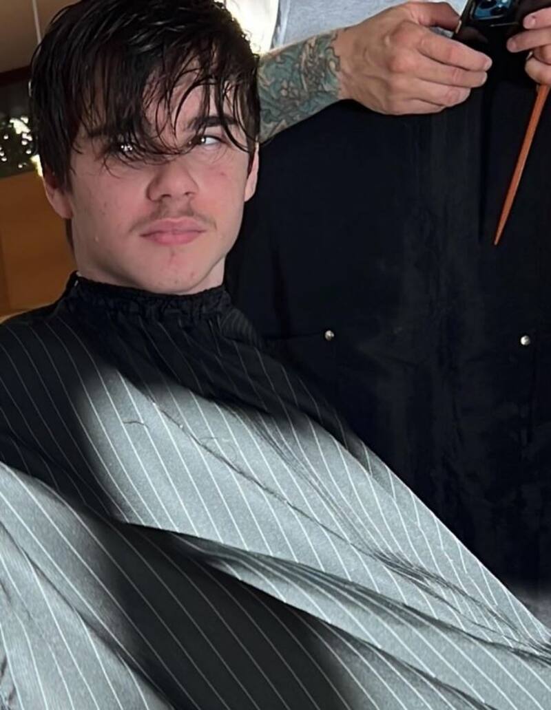 "Ya no hay más bebé", escribió al pie de una foto en la que se ve al adolescente después de hacerse un nuevo corte de cabello.