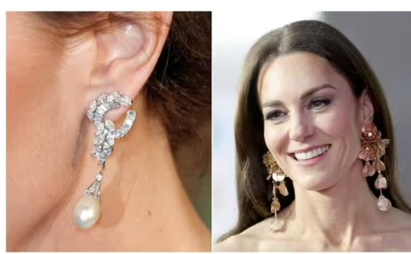 Por el contrario, en 2019, la (entonces) duquesa de Cambridge complementó el vestido con aretes de diamantes y perlas que pertenecieron a la princesa Diana. Además, usó un brazalete Queen's Diamond Quatrefoil y llevó un bolso Alexander McQueen.