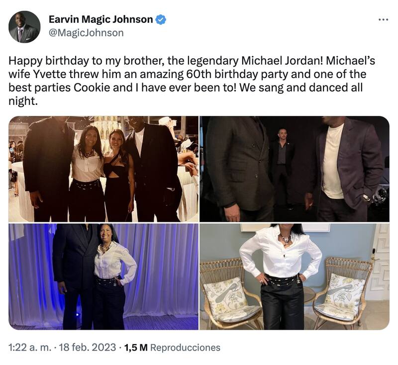Por un lado, Michael Jordan y Magic Johnson eran feroces competidores en la cancha, pero eso no les impidió desarrollar una fuerte amistad desde el año 1992. El vínculo entre los dos sigue siendo fuerte, tanto así que Magic y su esposa Cookie obtuvieron una invitación para la fiesta de cumpleaños.