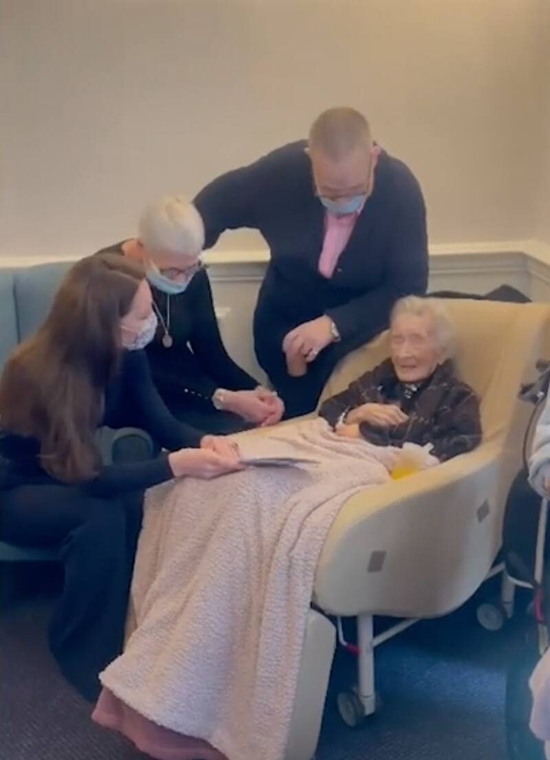 A su llegada, Kate Middleton se encontró con el personal del lugar y poco a poco le fueron presentando a distintos pacientes. Uno de ellos fue la señora Nora, una mujer de 109 años que resultó ser fan de la princesa de Gales.