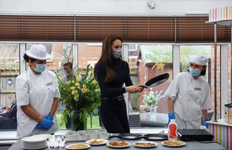 Al entrar, Kate Middleton se reunió con el personal y residentes del asilo, de quienes aprendió cómo brindan atención de alta calidad a los pacientes y con quienes además aprovechó para preparar unos ricos panqueques.