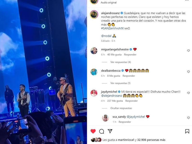 A través de su cuenta oficial de Instagram, Alejandro Sanz agradeció con un emotivo mensaje al público por la noche mágica que vivió en el escenario y compartió una serie de fotografías del momento especial que vivieron.