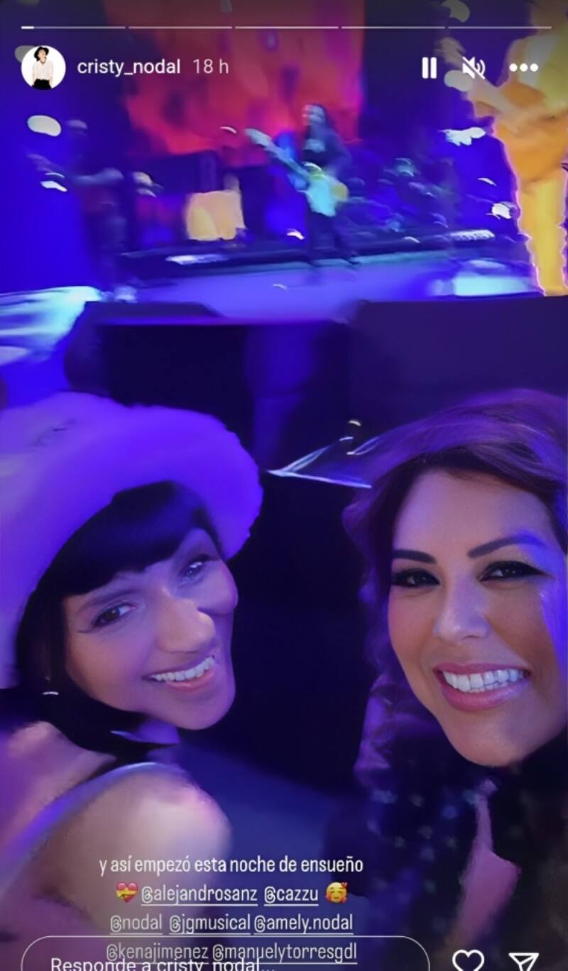 En el clip se les ve bailando y celebrando juntas el éxito que tuvo el también compositor mexicano. "Y así empezó esta noche de ensueño. Cazzu, Alejandro Sanz y Christian Nodal", escribió Cristina Nodal para acompañar dichos audiovisuales. "Gran orgullo por todas las bendiciones que Dios pone en tu camino. Mis dos grandes y máximos ídolos. Gracias, qué gran experiencia Christian Nodal y Alejandro Sanz".