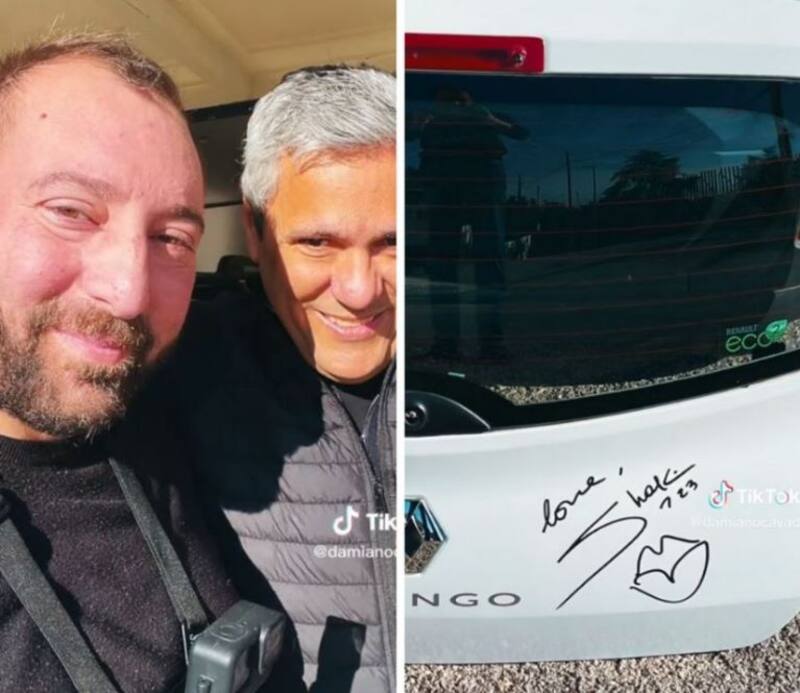Ahora un fan de la intérprete de Barranquilla se hizo viral en TikTok al compartir la hazaña que hizo de viajar desde Italia hasta Barcelona solo para que su artista favorita le firmara una puerta original de su auto Twingo.