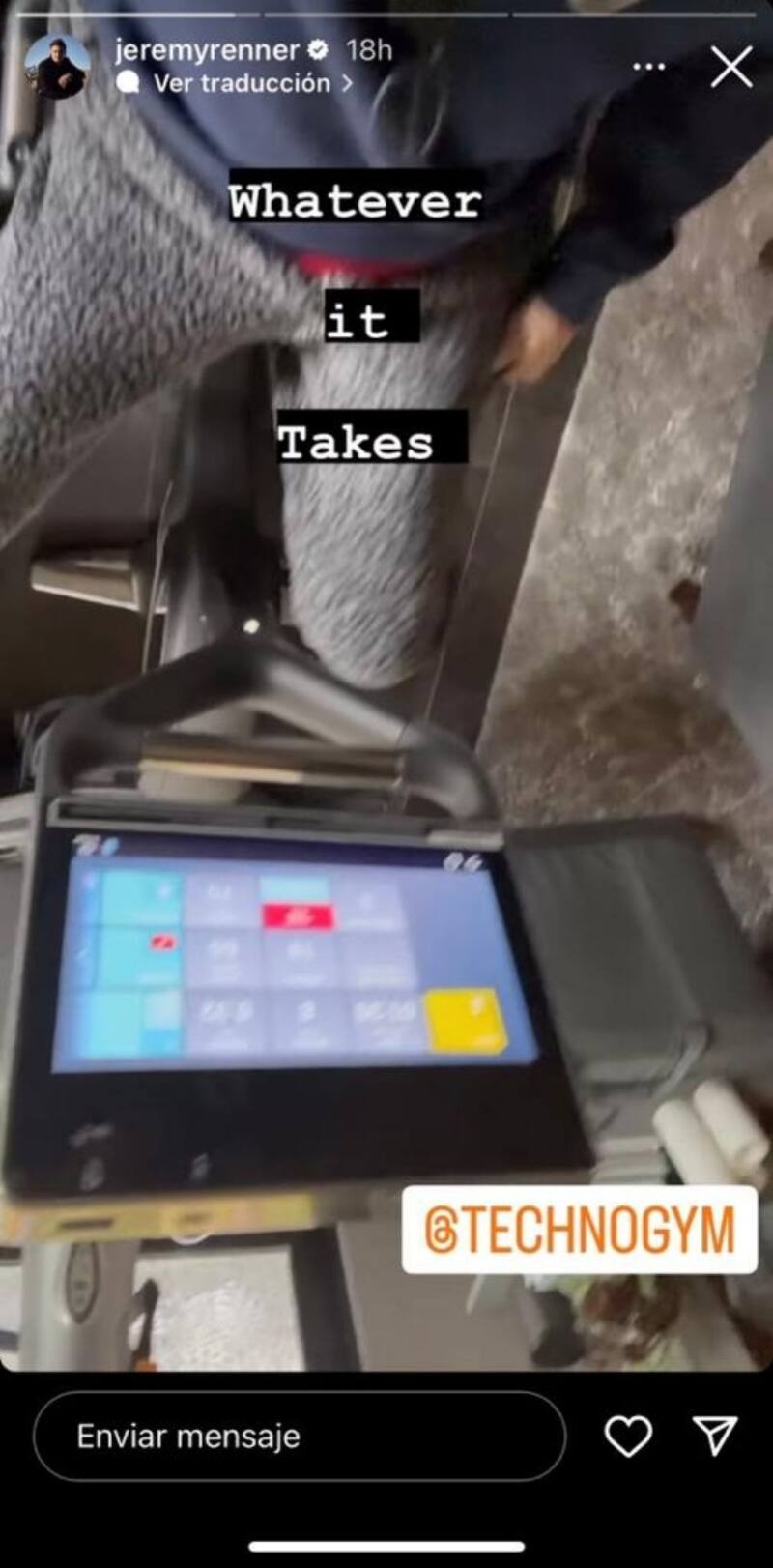 No obstante, Jeremy Renner se muestra muy positivo y no se rinde en su recuperación, pues lo deja ver en las instantáneas que subió en su red social. Además, el actor es muy disciplinado para hacer deporte que su rehabilitación es su gimnasio que disfruta.