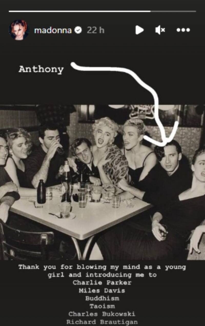 Madonna compartió recientemente una fotografía en las historias de sus redes sociales para rendirle un homenaje a su hermano. Lo señaló con una flecha y agregó el texto "Gracias por sorprenderme cuando era niña y presentarme a los músicos de jazz Charlie Parker y Miles Davis". También agregó que su hermano le enseñó las religiones como el budismo y el taoísmo, así como a los escritores Charles Bukowski, Richard Brautigan y Jack Kerouac "Sembraste muchas semillas importantes en mí", se lee.