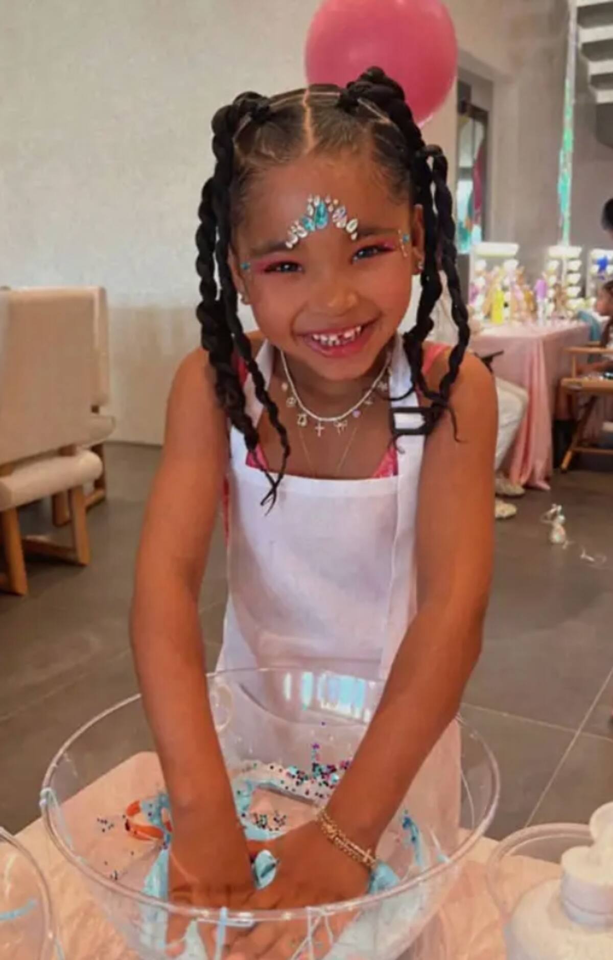Khloé Kardashian captó a True Thompson mientras se divertía preparando su propio slime con los distintos materiales que se encontraban frente a ella. Sin embargo, al publicar la fotografía en las historias de su cuenta oficial de Instagram comenzó a ser atacada por supuestamente haber editado la cara de su hija.