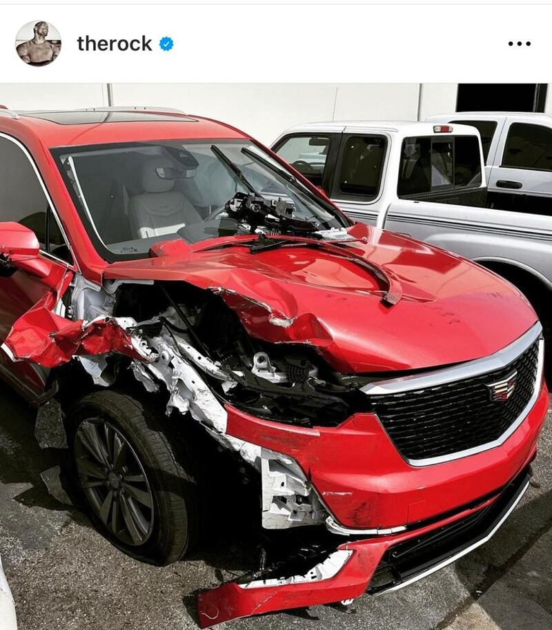 El estadounidense aprovechó sus redes sociales para mostrar cómo quedó el carro, el cual tiene un golpe visible en la parte delantera del lado derecho, y un poco del accidente. Además, The Rock dijo que su mamá se encontraba bien.