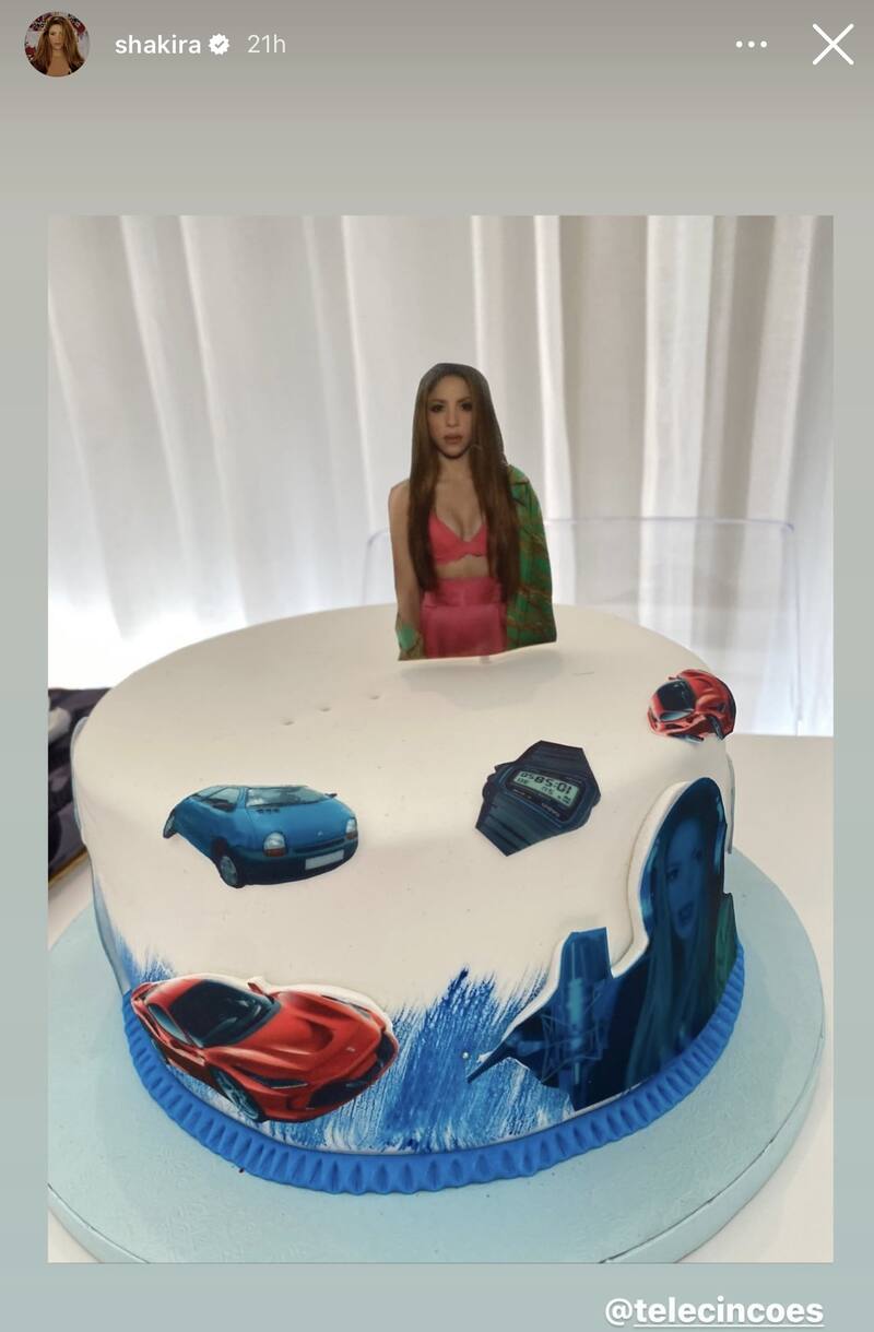 Shakira no pudo evitar reaccionar al atrevido pastel y a través de sus redes sociales compartió la fotografía del postre, pero después de haber quitado la imagen de Gerard Piqué, quien aparecía usando un reloj Casio, haciendo referencia a la letra de la colombiana: "Cambiaste un Ferrari por un Twingo. Cambiaste un Rolex por un Casio".