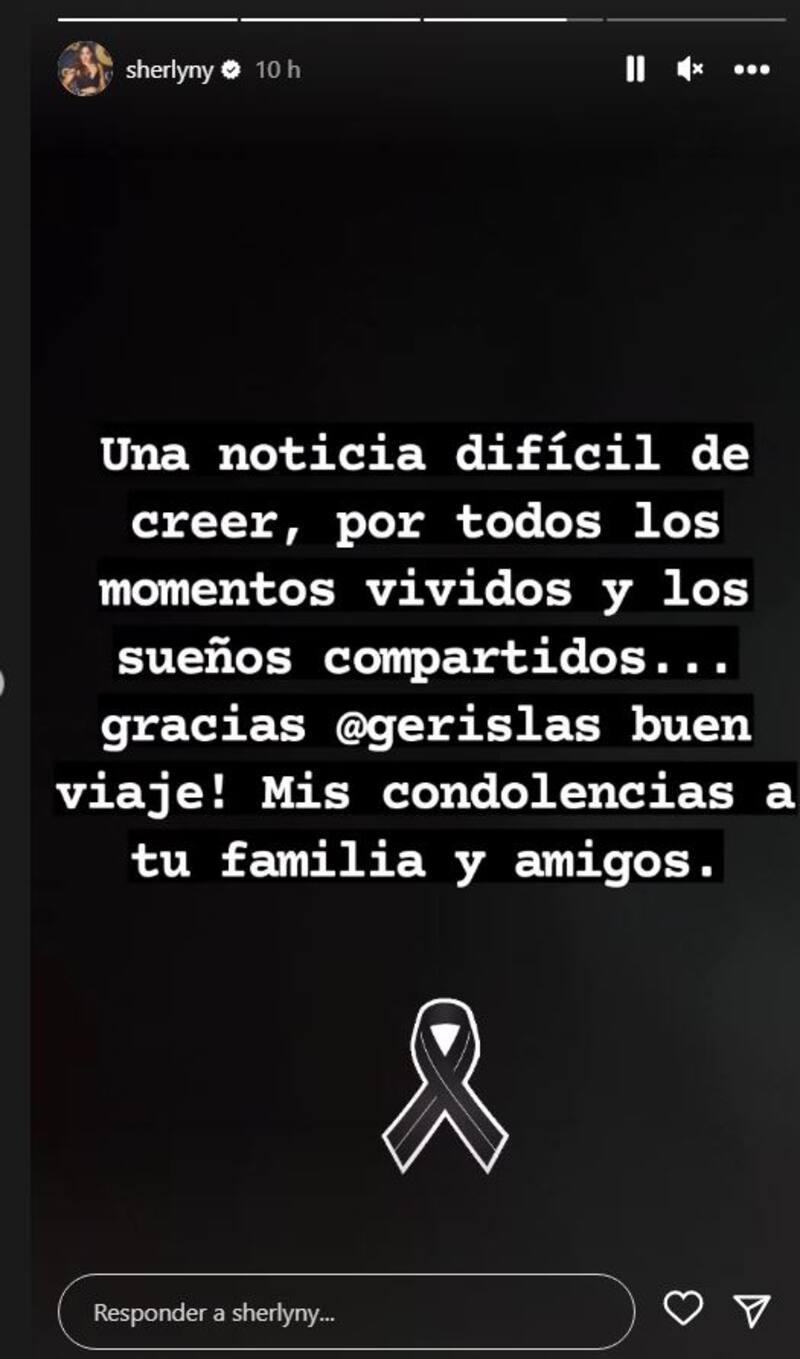 "Una noticia difícil de creer, por todos los momentos vividos y los sueños compartidos... gracias @gerislas. Buen viaje! Mis condolencias a tu familia y amigos", escribió la actriz en su cuenta de Instagram.