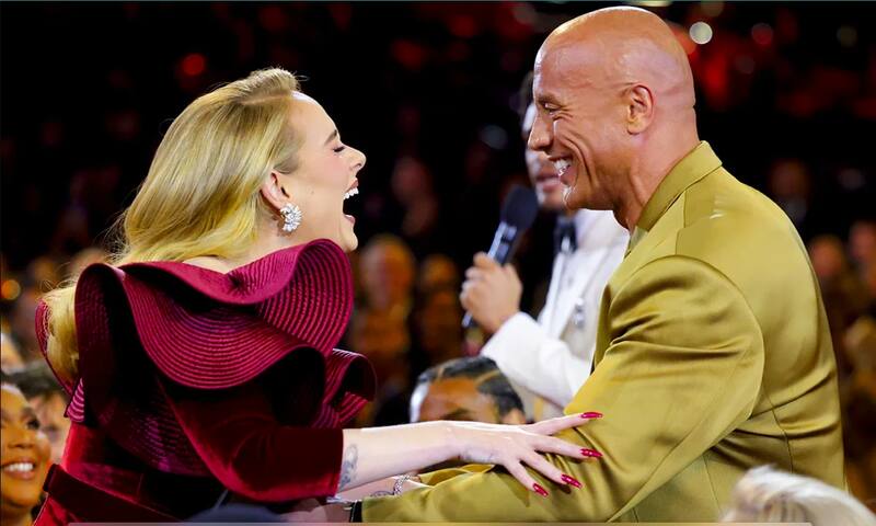 Curiosamente fue él quien le entregó el único premio que Adele se llevó en la noche. Recibió el galardón como Mejor Interpretación Pop en Solitario por "Easy On Me". A The Rock le tocó entregar ese premio y le dijo "Sube aquí, mejor amiga Adele". La cantante muy emocionada lo recibió de sus manos y se lo dedicó a su hijo Angelo. ¿Será este el inicio de una gran amistad?
