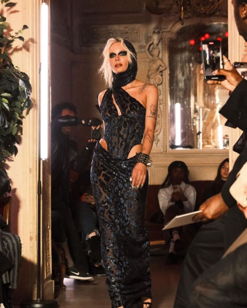 Halsey cerró el desfile con una pieza de dos piezas que constaba de un top negro transparente con estampado de leopardo y una falda larga del mismo diseño. “¡Gracias Vincent (el fundador de la marca) por invitarme, y felicidades a ti y a tu equipo por una colección tan impresionante y un espectáculo icónico!”, agradeció en su red social, dónde compartió distintas fotos de su experiencia.