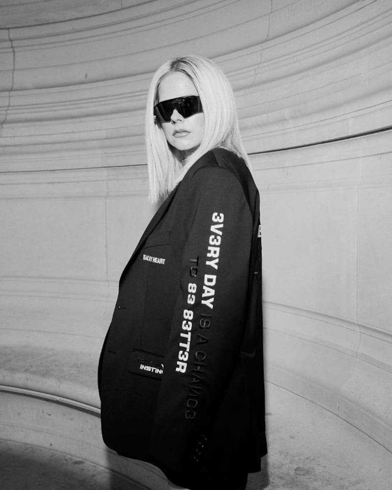 En el caso de la voz de "Complicated", la artista apareció luciendo una colección llamada Hidden Message Blazer de Vetements, en la que destaca el estampado de frases como “Ten paciencia, las cosas buenas toman tiempo” y "Confía en tus instintos". La cantante también asistió al desfile de Courrèges con otro look de Vetements en el que destacaba la leyenda: "Hoy no haré una mier**". Un outfit que complementó con botas largas.