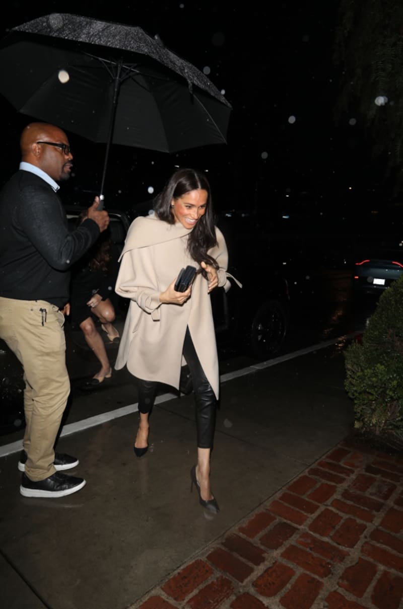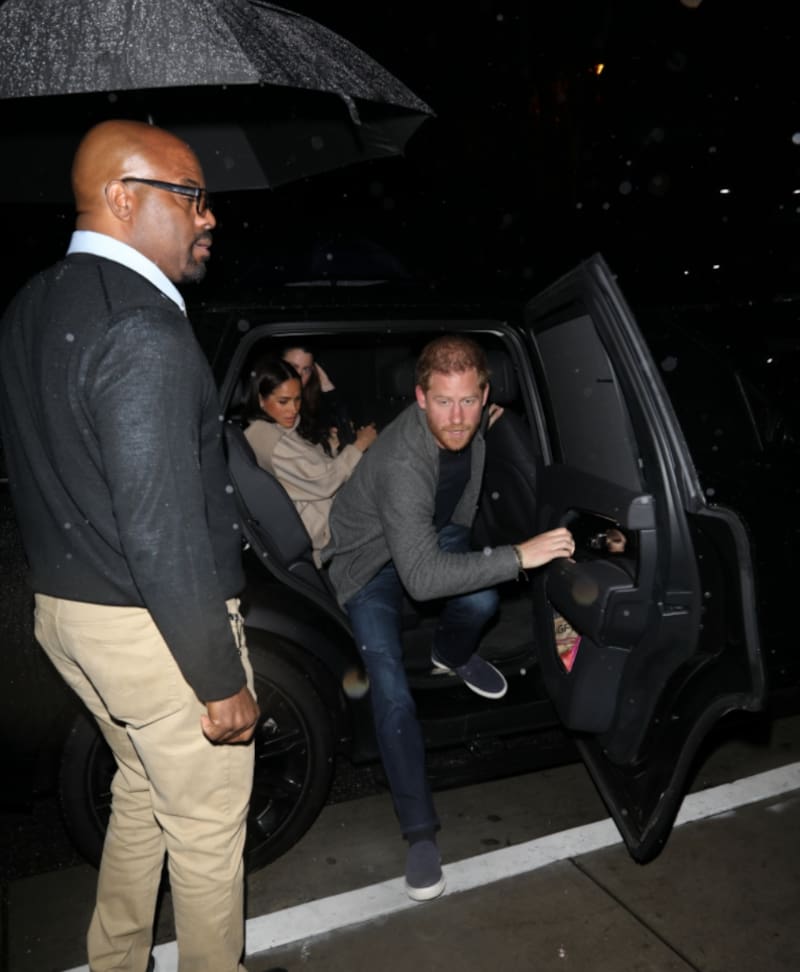 La noche del pasado martes Meghan Markle y el príncipe Harry fueron captados llegando a San Vicente Bungalows en Hollywood. El restaurante exclusivo para miembros, propiedad de Jeff Klein, prohíbe los teléfonos y fotografías dentro del lugar, por lo que la pareja pudo tener una cena tranquila sin interrupciones.