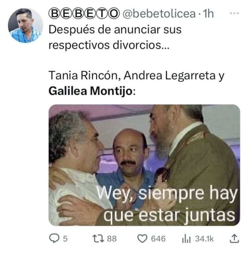 Sin duda la ruptura sentimental de Galilea Montijo con el político Fernando Reina, no ha podido pasar inadvertida en redes sociales y no solo algunas celebridades se han sumado a expresarle su cariño y apoyo a la tapatía, sino que también usuarios en la red han aprovechado para sacar un poco de humor.