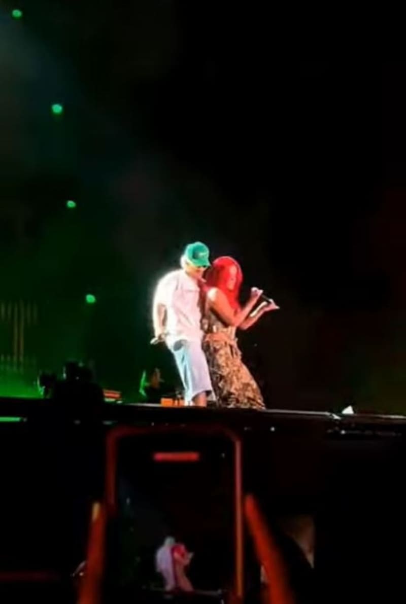 Uno de los momentos más emotivos de la noche ocurrió cuando la también conocida como “La Bichota” invitó al escenario al cantante Feid, con quien se dice tiene una relación amorosa y que incluso su sencillo “Tus Gafitas” es un poema de amor para él.
