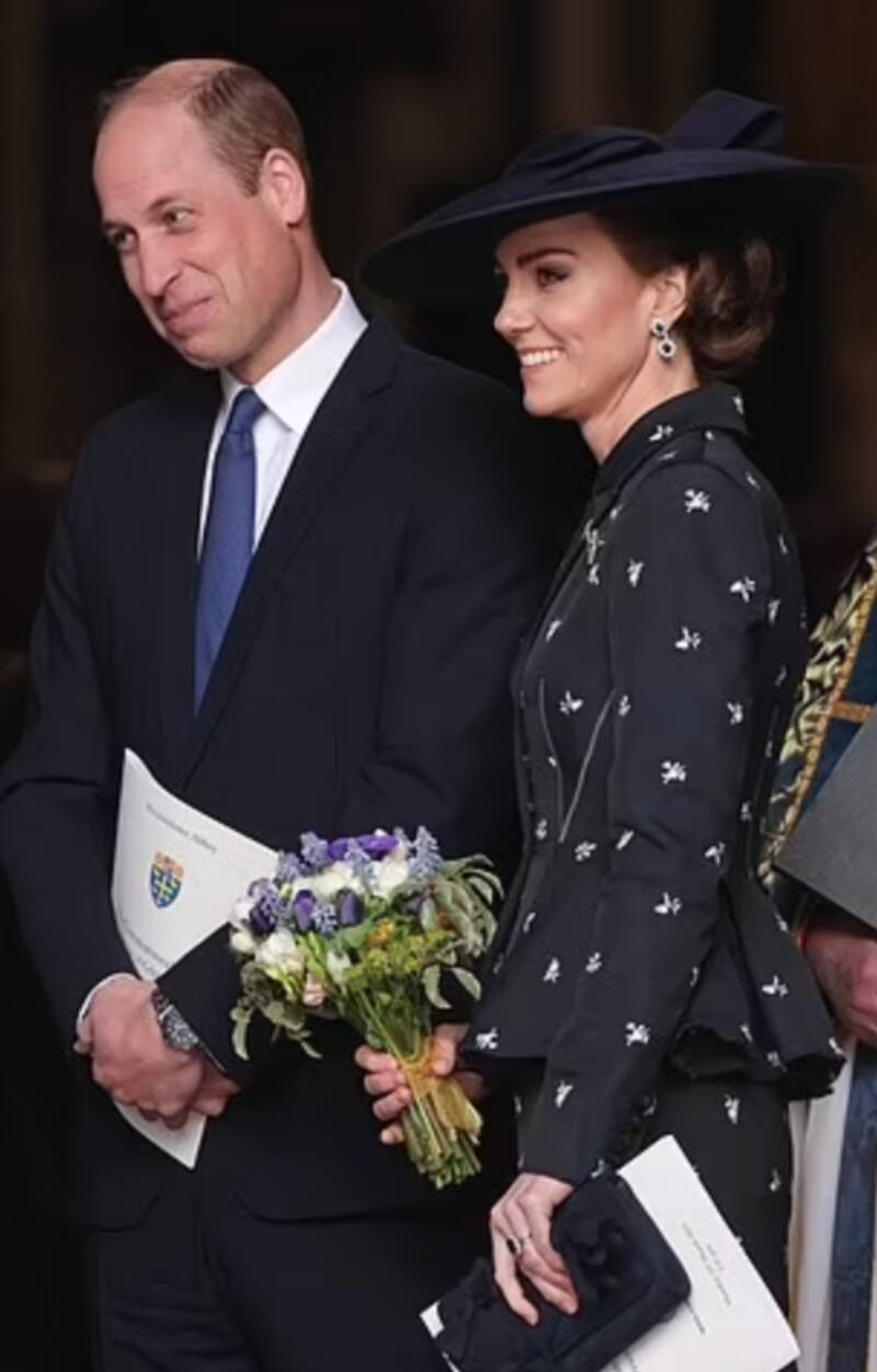 Tal fue el caso de su llegada a la Abadía de Westminster este 13 de marzo para el servicio anual en honor a la red global de 56 países. Kate Middleton y el príncipe William fueron captados bajándose de su automóvil combinando atuendos en un profundo tono azul marino.