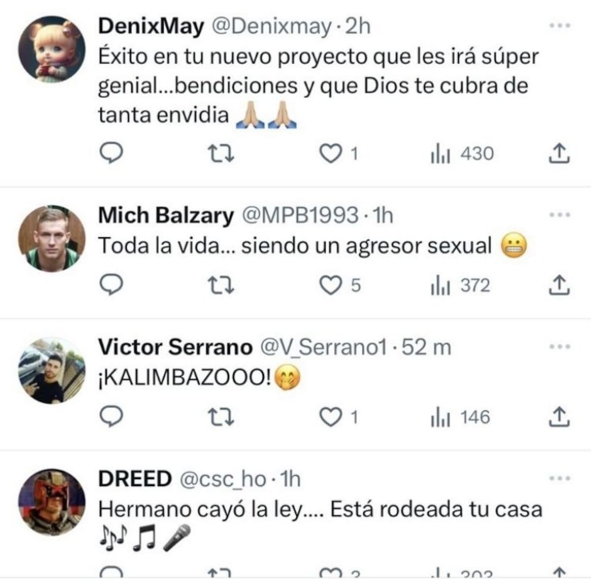 Entre los comentarios se pueden leer: “Todavía…siendo un agresor sexual”, “El Kalimbazooo”, “Hermano cayó la ley… está rodeada tu casa”.