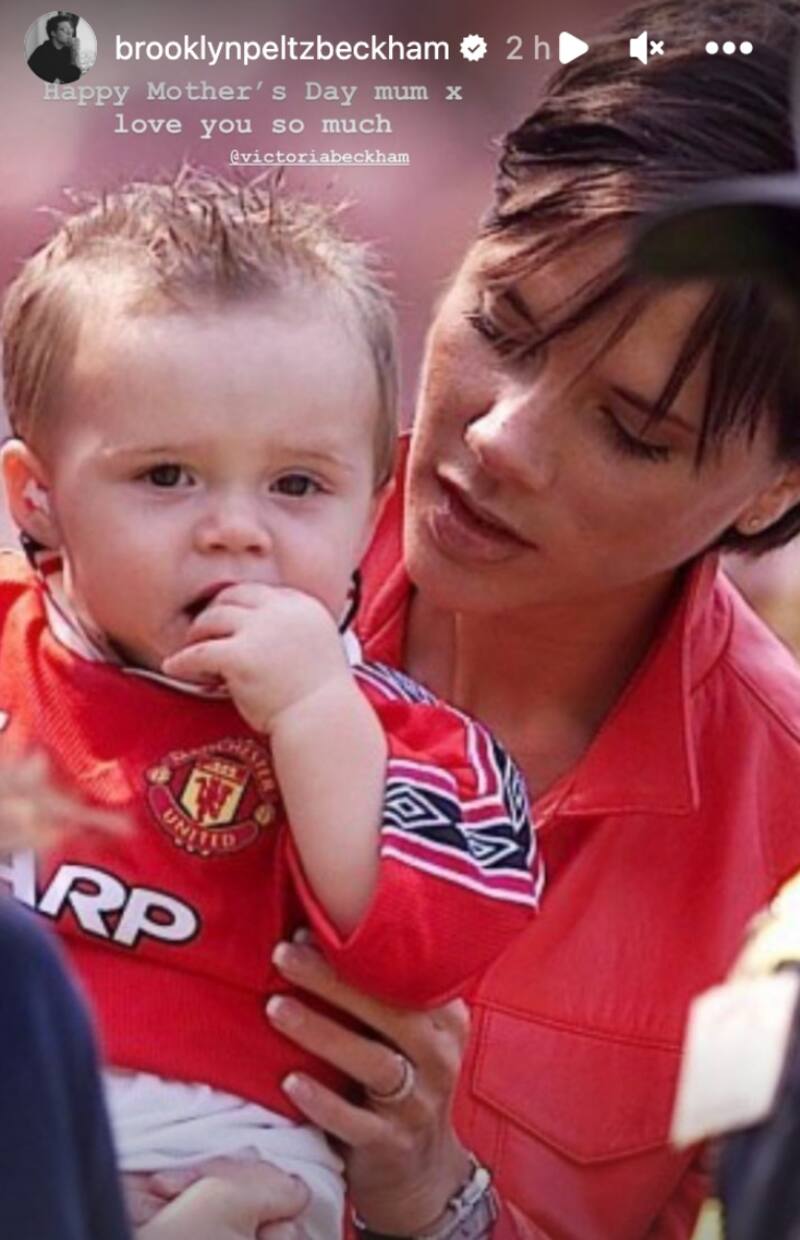 A través de su cuenta oficial de Instagram, él también aspirante a chef compartió en sus historias una fotografía en la que aparece junto a Victoria Beckham hace unos años atrás, específicamente cuando Brooklyn era apenas un bebé. “Feliz Día de las Madres mamá (besos). Te amo tanto”, escribió el joven de 24 años, cariño que fue correspondido por la Spice Girl.