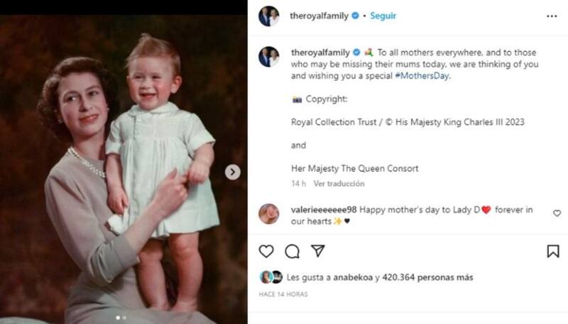 El rey Carlos decidió utilizar la cuenta oficial de Instagram de The Royal Family para colocar una dulce foto de su infancia junto a su madre, pues recordemos este es el primer Día de la Madre sin la monarca.