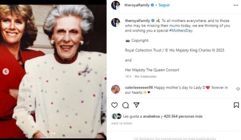 Cabe señalar que en la publicación también presenta una imagen de la reina Camilla y su madre, Rosalind Shand, quien murió en 1994.