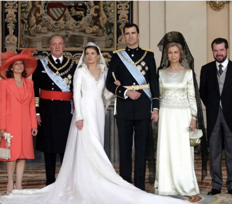 La reina Letizia de España usó uno de los vestidos de boda reales más opulentos y caros de la historia. El vestido de novia fue diseñado por el reconocido creador de moda español, Manuel Pertegaz.