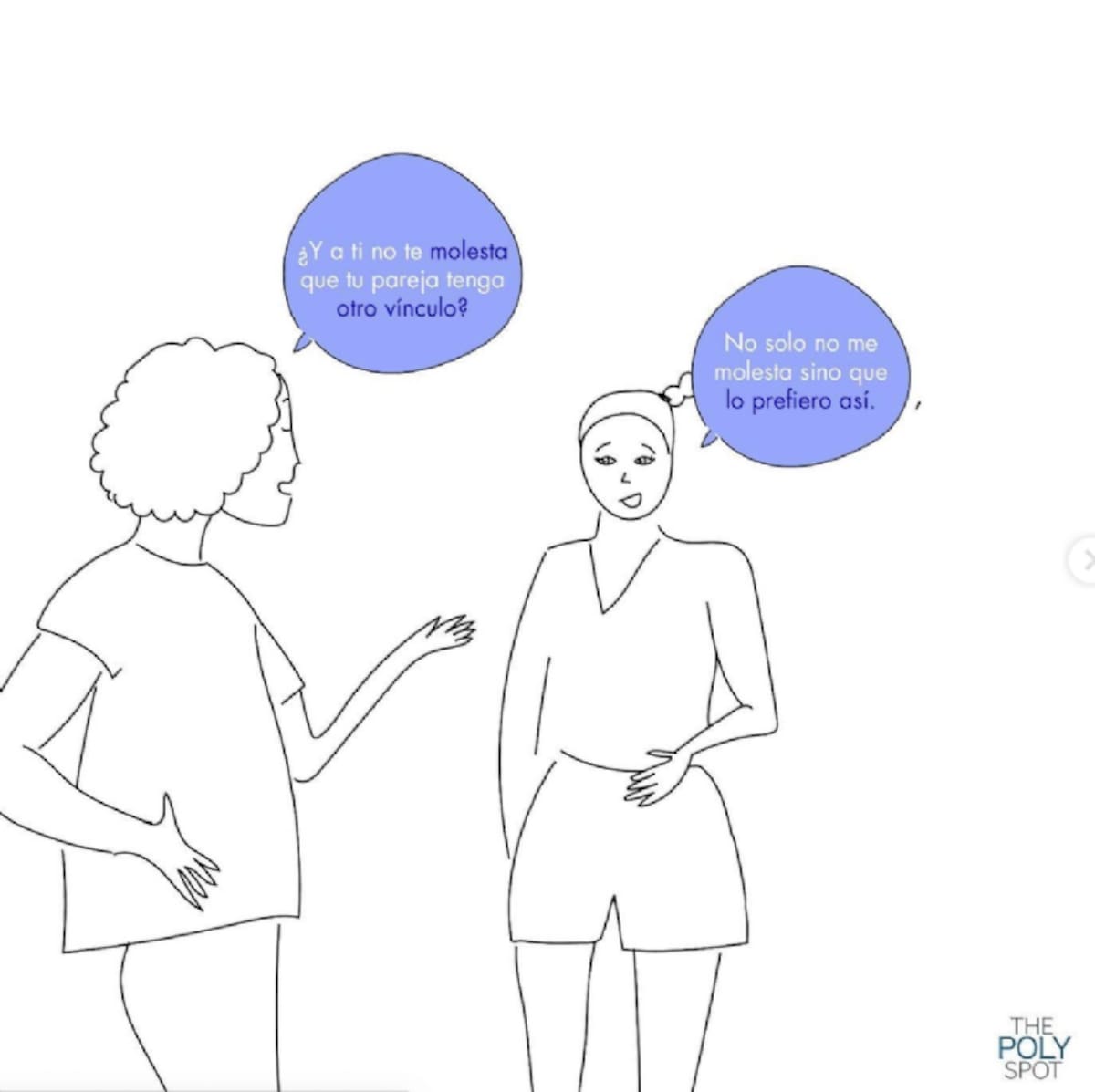 Fanáticos de la pareja se dieron a la tarea de buscar más a fondo sobre su cuenta y dieron con algunos perfiles que Clara Chía Martí sigue. Entre ellos se encuentra @thepolyspot, una plataforma dedicada a compartir información sobre relaciones éticas no monógamas.