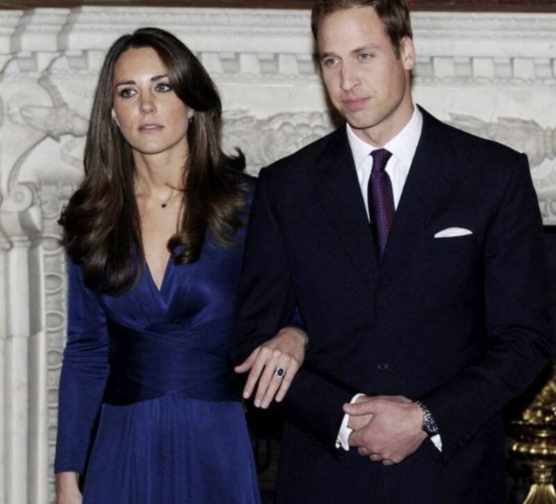 "Simétricamente (y quizás simbólicamente), la propia Kate Middleton más tarde usó un vestido azul real que reflejaba el anillo de la madre de William cuando estaba confirmando su propio compromiso con la prensa internacional".