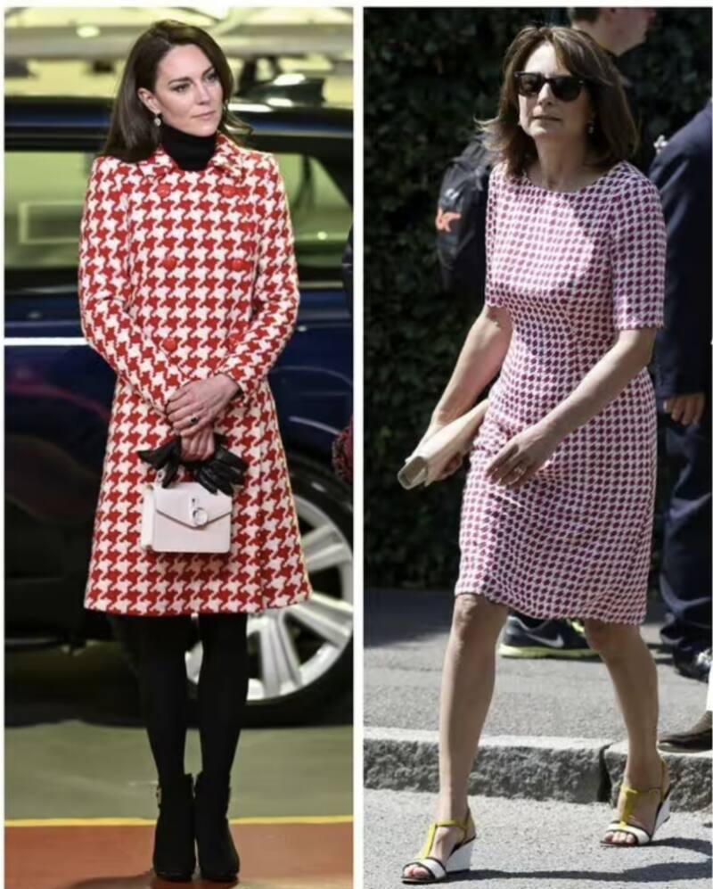 En 2014, su madre Carole usó un vestido a cuadros rojo y blanco similar, excepto que el suyo era de manga corta y apropiado para el verano. Carole usó el atuendo cuando asistió a Wimbledon ese año.
