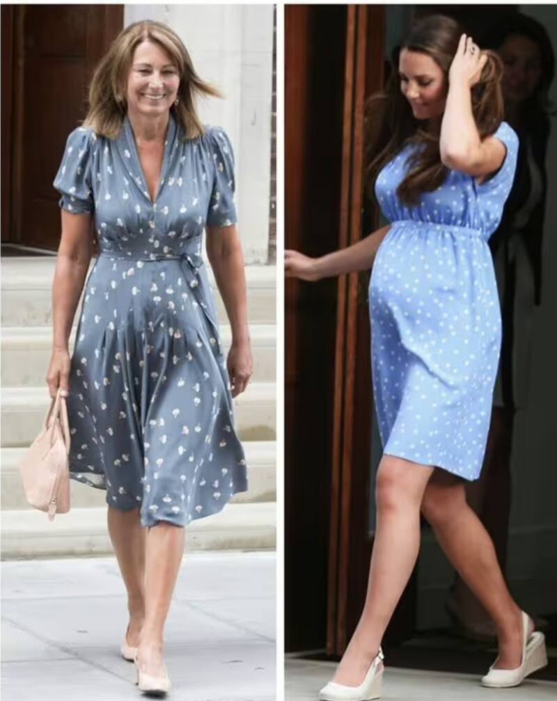 Uno de los primeros ejemplos de Kate y Carole con estilos similares fue en 2013 cuando la princesa dio a luz al príncipe George uso un hermoso vestido azul de Jenny Packham.
