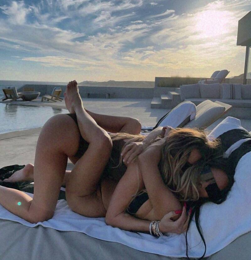 “KiKi y KoKo toman Cabo”, escribieron Kim y Khloé Kardashian en ambas publicaciones donde compartieron una serie de fotografías donde aparecen en bikinis recostadas en un camastro mientras juegan una encima de otra.