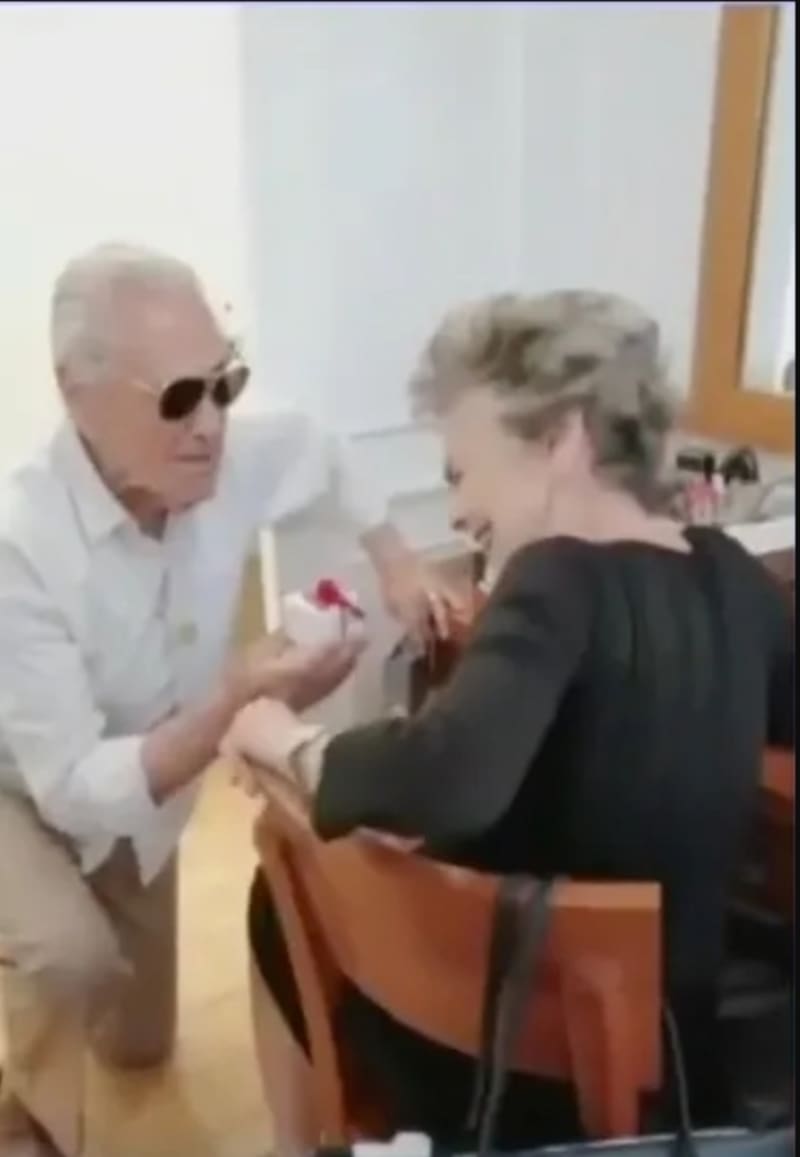 Kate Trillo, su querida esposa, cumplió 81 años recientemente así que Eric del Castillo como todo un caballero, decidió arrodillarse frente a ella y pedirle matrimonio con una hermosa sortija. Están casados pero no le había dado un anillo de compromiso. Por supuesto que fue una gran sorpresa para ella que fue captada en fotografías y videos de los presentes.