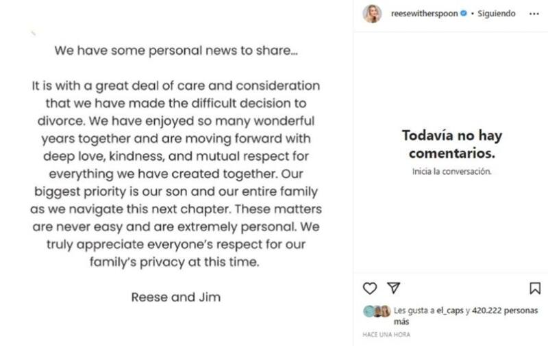 La actriz Reese Witherspoon se volvió tendencia este viernes 24 de marzo, ya que anunció en un comunicado que está en proceso de divorcio del representante Jim Tothm con quien estuvo casada durante casi 12 años.