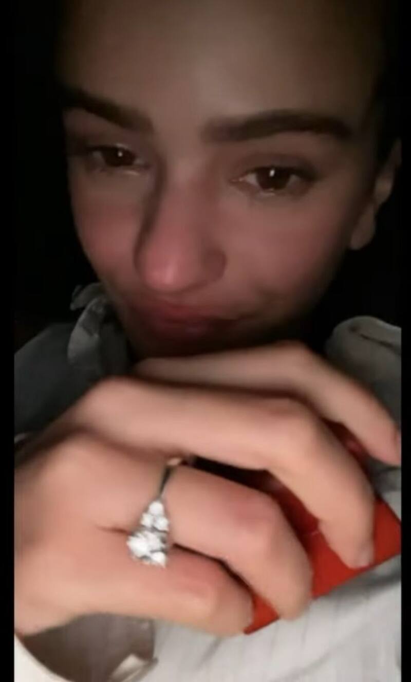 Pero al final del clip vino la sorpresa. Una emocionada Rosalía, quien se presentó el fin de semana pasada en los Lollapalooza Chile y Argentina, mostraba el anillo de compromiso que recibió de Raw Alejandro, mientras se secaba una lágrima de su mejilla.