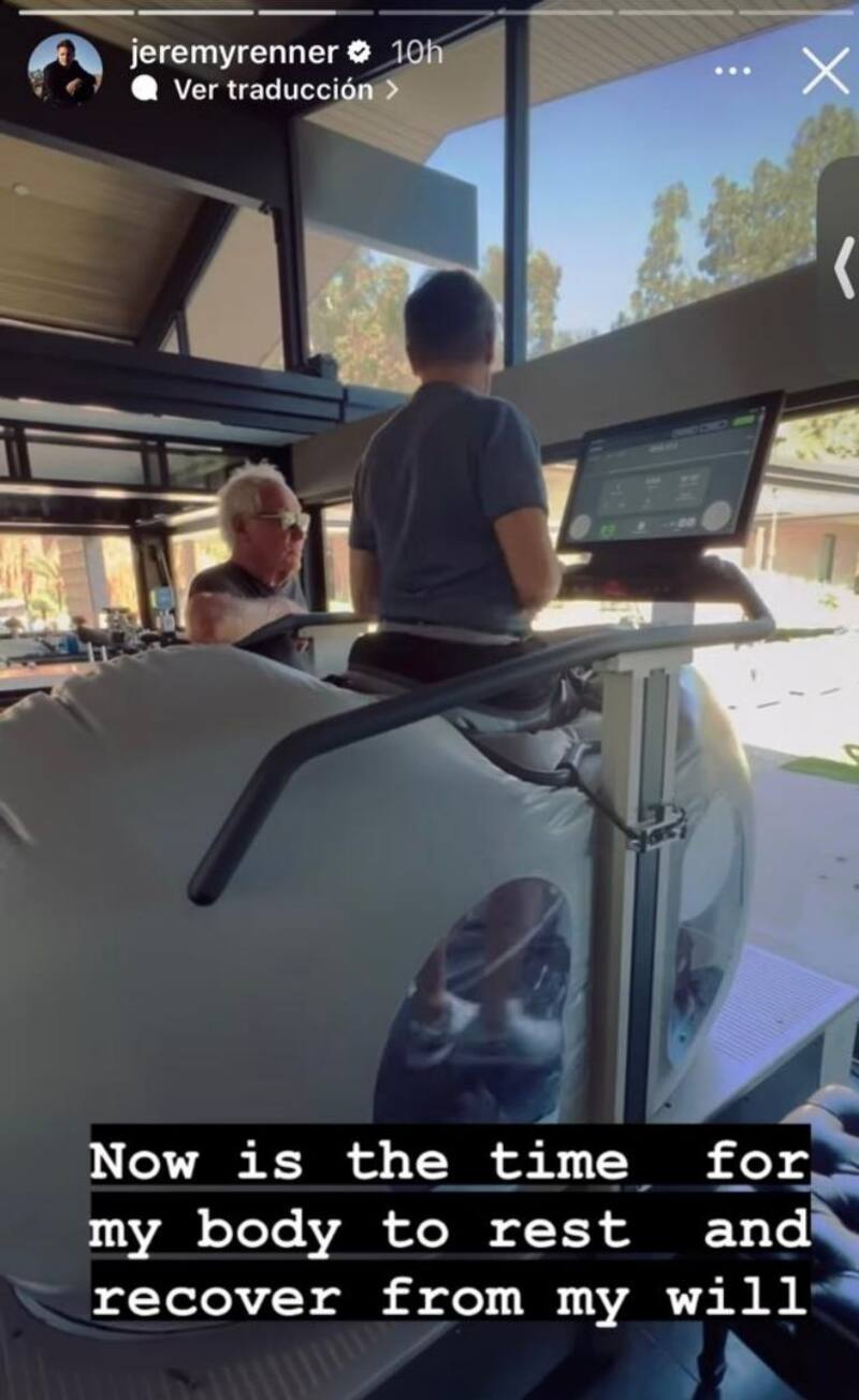 "Ahora es el tiempo para que mi cuerpo se reinicie y se recupera por mi voluntad", comentó Jeremy Renneren en su cuenta de Instagram junto a un video