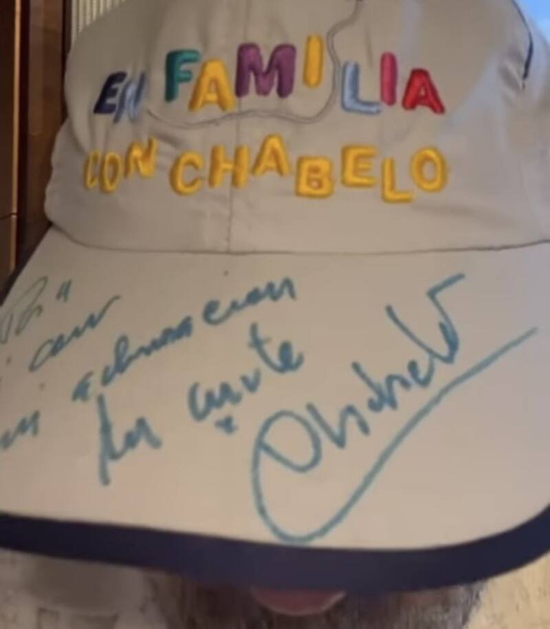 Así Mijares mostró con orgullo la gorra que le obsequió el presentador, del icónico programa de “En familia con 'Chabelo'”, la cual cuenta con una dedicatoria muy especial.